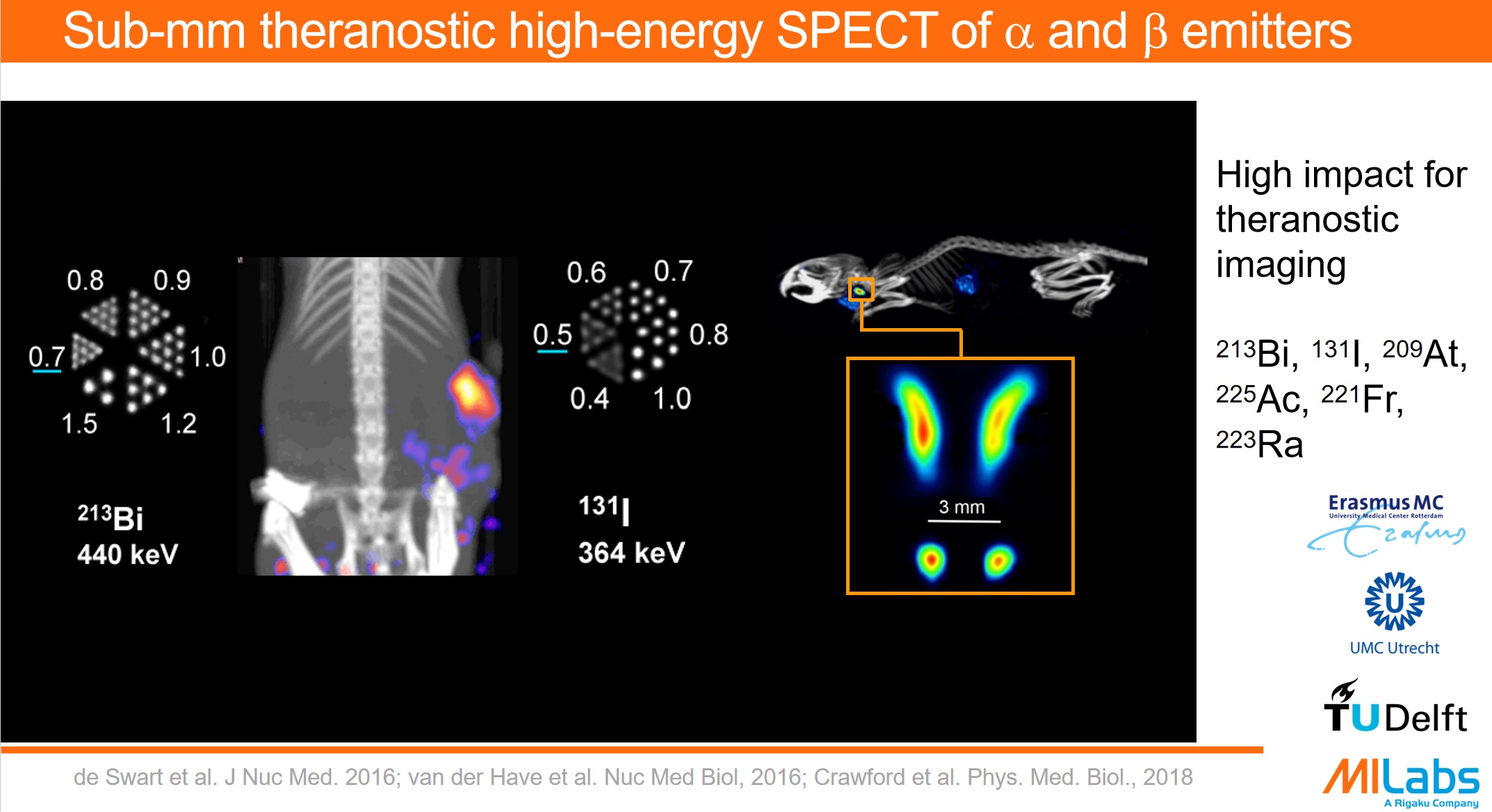 基于独创的多针孔准直器技术,VECTor7CT可提供同时检测多种PET同位素、同时检测PET与SPECT同位素、以及检测大多数α及β放疗核素并进行成像等多项独特功能。以此,VECTor7CT可极大限度助力用户开拓诊疗一体化等前沿研究,并拓展新药研发、转化医学等应用领域的探索空间。